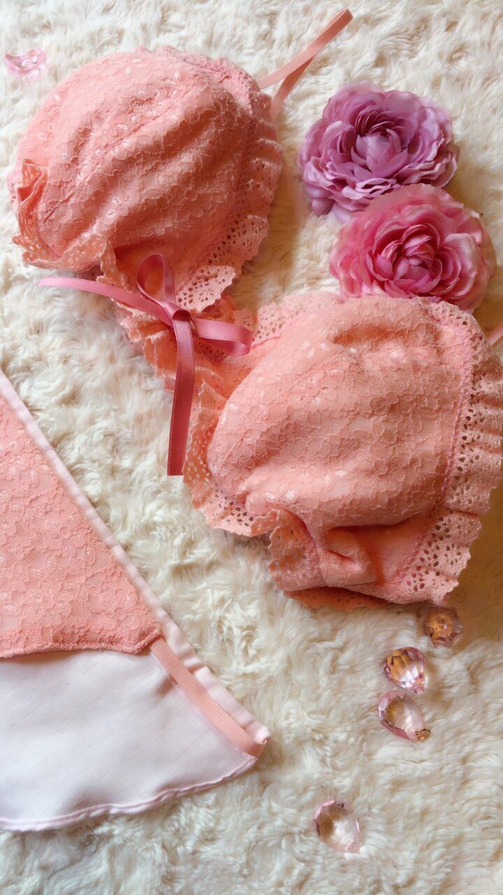 表のレースはピンクにレースでとっても可愛い♡